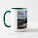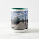 Diese zwei-getonte Tasse kennzeichnet ein Foto von GO MP40 Lokomotive #618, welche oben Lakeshore die Rückseite des GEHEN Zugs an Oshawa Station, unter einen hellen Himmel am 4. Juli 2014 holt. Dieses Foto wurde durch James-Bogen für Durchfahrt Toronto genommen.