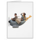 Humorvolles Bild des Mann- und Frauenfliegens in einem kleinen Flugzeug mit offenem Cockpit auf einem weißen Hintergrund. Vervollkommnen Sie für gehendes jedermann "setzt"!