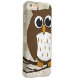 Niedlicher Cartoon gehockte Eule vor dem Mond.