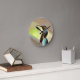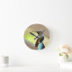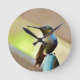 Gehockter karminroter und grüner kleiner Kolibri Runde Wanduhr