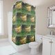 Dieser Duschvorhang kennzeichnet eine lederfarbene orpington Henne, die durch eine alte Schubkarre auf einem Connecticut-Bauernhof schlendert.
