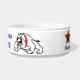 Gehorsamklassen sind für kundengerechte Schüssel der Wimpsbulldogge. Diese lustige rote und weiße Hundenahrung oder Wasserschüssel hat den Text "Gehorsam-Klassen sind für Wimps" mit einem lustigen Cartoonstierhund, der um die Schüssel und einen Rot- und Goldstern mit dem Anarchiesymbol auf der Rückseite läuft. Vervollkommnen Sie für alle Hunde- oder Haustierliebhaber besonders die- mit einem frechen Hund. Fügen Sie den Ihren eigenen Namen des Haustieres für ein völlig kundengerechtes und personalisiertes Haustier- oder Hundegeschenk hinzu.
