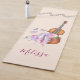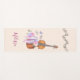 Personalisierter Yoga-Matte mit musikalischen Noten und einer hölzernen Geige, einige rosa Ballett-Hausschuhe, die davor stehen und mit Blume und Schmetterlingen geschmückt sind. Set auf einem pfirsichrosa Hintergrund.