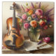 Geige, Noten und eine Vase der Blume Fliese