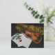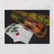 Geige und rote Rose auf schwarzem Hintergrund Postkarte