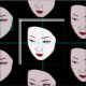 Geisha-Maske Frau Kunst. Geisha Gesicht. Benutzerdefinierte Hintergrundfarbe