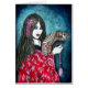 Originelle Gemälde mit Aquarellen und Farbstiften und weißer Acrylfarbe. Asiatischer Einfluss einer Frau, die einen Ventilator hält. Kühne, reiche Farben machen dies zu einem auffälligen Design, das für jeden Gegenstand gut geeignet ist.