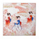 Vintage japanische bunte Porzellanmalerei mit Geishas und schöner Garten gestalten die Einbeziehung der Blumen und der Brücken landschaftlich. Fotografie.