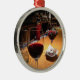 Serenszene mit festlichen Gläsern, verführerischem Rotwein und glitzerndem Urlaublicht im Hintergrund.