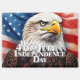 Am Tag der Unabhängigkeit der USA erhebt sich der Glatzenadler - ein Symbol für Freiheit und Stärke - vor der winzigen Flagge der Staaten. Sein durchdringender Blick und die fett rot, weiß und blau im Hintergrund sind Mut, Entschlossenheit und die historischen Werte, die am 4. Juli gefeiert wurden. Dieses Bild verkörpert den Stolz einer Nation, die für ihre Unabhängigkeit steht.