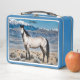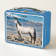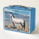 Ein Buckskin-Schnurrbart vorsichtig auf den Betrachter, mit Schneespitzen und Sagebrush im Hintergrund. Die perfekte Lunchbox für das Liebe (oder die Frau!).