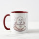Ein niedlicher Geist sitzt ruhig in einem Teacup und hält einen winzigen Löffel. Line Art oder sanfte Pastelltöne. Whimsikalisch und nicht beängstigend