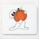 Ein kleiner Geist hält einen großen orangefarbenen Kürbis auf anpassbare Halloween-T - Shirt, Tasse, Trick oder Leckereien, Magnete und andere Halloween-Gegenstände.