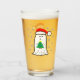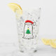 Niedlicher Geist mit einem Weihnachtsbaum und einer Weihnachtsmannmütze mit Schneeflocken im Hintergrund