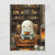 Geist und Katze in der Bibliothek mit einem Kaffee Postkarte
