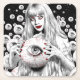 Das ist eine skurrile, surreale, unheimliche und ätherische Darstellung eines jungen Mädchens im Raum, das mit Ballons mit Augen auf sie spielt. Es ist ein Fest der Fantasie und des freien Geistes und erinnert an Magie und Märchen.