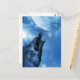 Ein Geisterwolf heult zum Wintermond. Ein ungewöhnliches und einzigartiges Design, das den Vollmond am Himmel mit stylisierten Sternen zeigt.