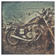 Redigiertes Bild des Motorrades kreativ mit einem beunruhigten Gefühl hat einen Hintergrund der verblaßten blauen und schwarzen Grenze. Entsprochen für das Steppen oder das In Handarbeit machen.