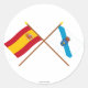 Gekreuzte Flaggen Spaniens und Galiciens Runder Aufkleber