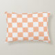 Die karierten Quadrate pfirsichfarben das orange weiße geometrische Retromuster. Cooles geometrisches rechteckiges Muster in Retro. Vintage Fliesen weiß und pfirsichfarben hellorange modernes Schachbrett.