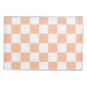 Die karierten Quadrate pfirsichfarben das orange weiße geometrische Retromuster. Cooles geometrisches rechteckiges Muster in Retro. Vintage Fliesen weiß und pfirsichfarben hellorange modernes Schachbrett.
