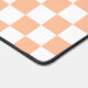 Die karierten Quadrate pfirsichfarben das orange weiße geometrische Retromuster. Cooles geometrisches rechteckiges Muster in Retro. Vintage Fliesen weiß und pfirsichfarben hellorange modernes Schachbrett.
