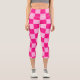 Markierte Quadrate hellrosa geometrische Retro Capri Leggings. Modischer Spaß Kleidung Geschenk für sie. Cooles geometrisches rechteckiges Muster in Retro. Vintage Kacheln heiß rosa modernes Schachbrett.