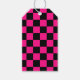 Markierte Quadrate heißen rosa schwarzen geometrischen Retro-Muster Geschenk Tags für ihren Geburtstag. Cooles geometrisches rechteckiges Muster in Retro. Vintage Fliesen schwarz und heiß rosa modernes Schachbrett.