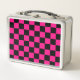 Checked Quadrate heiß rosa schwarz geometrische Retro-Muster Lunch Box Geschenk für ihre Schule oder Job. Cooles geometrisches rechteckiges Muster in Retro. Vintage Fliesen schwarz und heiß rosa modernes Schachbrett.