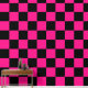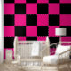 Kartierte Quadrate heißen rosa schwarzen geometrischen Retromuster Wallpaper. Wall Art Décor mit Coolem Retro-karierten geometrischen quadratischen Muster. Vintage Fliesen schwarz und heiß rosa modernes Schachbrett.
