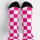 Checkered Quadrate Hot Rosa weißen geometrischen Retromuster Socken. Accessoire Kleidungsgeschenk für sie. Cooles geometrisches rechteckiges Muster in Retro. Vintage Fliesen weiß und heiß rosa modernes Schachbrett.