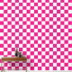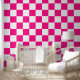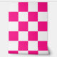 Kartierte Quadrate Hot-Rosa-weißes geometrisches Retromuster Wallpaper. Wall Art Décor mit Coolem Retro-karierten geometrischen quadratischen Muster. Vintage Fliesen weiß und heiß rosa modernes Schachbrett.