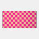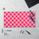 Gekreuzte Quadrate pfirsichfarben geometrisch rosa Retro Desk Mat. Einzigartige coole Schreibtischmatte für Büro, Zimmer, Arbeit, Werkstatt, Spielzimmer... Kegelförmige Quadrate heiß rosa pfirsichrosa geometrische Retromuster Geschenk für sie. Cooles geometrisches rechteckiges Muster in Retro. Vintage Kacheln heiß rosa modernes Schachbrett.