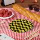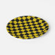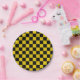 Abstrakte Digitalkunst aus Gold und schwarzen Quadraten in einer karierten Formation.