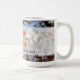 Diese Tasse zeigt ein wunderschönes Bild gefallener Blätter mit winzigen gelben Pilzen inmitten des grünen Grases. Die anpassbare Beschriftung lautet: "Der Herbst zeigt uns, wie schön es ist, Dinge lassen"