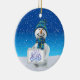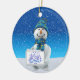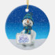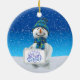 Erhellen Sie herauf Ihren Weihnachtsbaum und geben Sie eine Touch der Wärme und Aufregung der Feiertage zu Ihrer Weihnachtsdekoration mit dieser reizend Kreis-Keramik Weihnachtsbaumverzierung. Einen niedlichen Snowman kennzeichnend, der eine Goldweihnachtsglocke auf einem weißen schneebedeckten Feld, blauen einem Himmel des hellen Winters und einem Beginn der Schneefälle, hält, ist diese reizend Verzierung eine perfekte Weise, die Ferienzeit mit Ihrer Familie zu gedenken und macht ein großes Geschenk für alle Ihre geliebten.