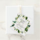 Blumenmarken mit einem handgemalten Gastgeschenk Hochzeit Aquarell, weiße Rosen und Grünpflanzen mit einem schieren Overlay, der die Nachricht "Liebe Lass Grow" in einem schönen handgeschriebenen Skript und Ihre Namen und Datum unten enthält. Die Rückseite ist eine passende Farbe Grün und kann in jede gewünschte Farbe geändert werden. Diese eleganten Tags eignen sich ideal für eine Gartenhochzeit im Sommer und sorgen für eine persönliche Touch.