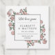 Blumenetiketten in Weiß mit gelassen Liebe wachsen in einem hübschen Skript in einem Rahmen, der mit Zweigen von Hand gezeichnet blütenrosa Blume und grünen Blätter verziert. Personalisieren Sie mit Ihren Namen und Hochzeitstermin.