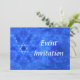Eine Einladung für eine Bar/Bat Mitzvah, eine Hochzeit oder eine andere Veranstaltung. Ein schönes Fraktal in Blau und Weiß erinnert an ausgestreckte Federn am Ende eines Vogelflügels. In der Mitte befindet sich auch ein kleiner Star of David (Magen David). Ursprünglich war es der Hintergrund für ein anderes Bild, das ich für schön hielt, auf sich allein gestellt zu stehen.