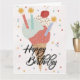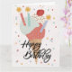 Mit dieser gefalteten Geburtstagskarte servieren Sie drei Freudenspuren mit einer farbenfrohen Illustration einer Eiscreme mit Geburtstagskerzen und einer Kirsche oben. An der Vorderseite steht "Glücklicher Geburtstag" und innen folgt "Haben Sie Gelatine Spaß!"
