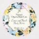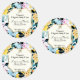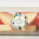 Ein wasserdichtes Produktetikett mit einem gelben und blauen Blumenmuster im Hintergrund. Hat Platz für Ihr Logo.
