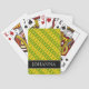 Das Design dieser Spielkarten beinhaltet Symbole in grünen Dollarzeichen innerhalb gelber Streifen und Symbole in grünen Streifen in gelben Dollarzeichen ($). Es könnte ein großartiges Geschenk für jemanden sein, der in der Finanzbranche arbeitet (wie einen Buchhalter, einen Investor oder im Bankwesen), oder vielleicht für jemanden, der Geldscheine und Münzen sammelt. Es verfügt auch über einen individuelle Name.