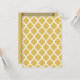 Ein stilvolles, etwas Retro-marokkanisches Fliesenmuster in Weiß auf einem misted-gelben Hintergrund, einer der beliebtesten Modefarben des Jahres.