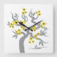 Gelb, grau Liebesvögel Kirschbaum & Blüten Quadratische Wanduhr