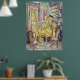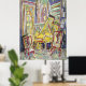 Sind wir in New York oder Paris? Der Balkon bietet die zweite Aussicht. Wird Jazz gespielt, oder etwas aus dem klassischen Repertoire? Ein Cello wird gegen die Klavierbank befestigt. Zwei verzierte Chippendale-Stühle stehen vor uns. Die Farbpalette umfasst Gelb, Blues, Grüntöne und Püree. Weiße Pinselstriche und schwarze Pen-Linien aus Acrylfarbe definieren und Kontur der Formen. Der Künstler Peter Stilton ist international bekannt. Seine Gemälde und Skulpturen befinden sich in privaten und gewerblichen Sammlungen auf der ganzen Welt... von Tel Aviv bis Stockholm, einschließlich einer Kommission für den saudischen Königspalast Peter war der erste Amerikaner, der eine Ein-Mann-Show an der Sorbonne (Universität von Paris) hatte.