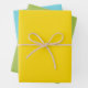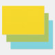 Papierblätter aus gelben, grünen und blauen Umschlägen