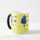 Schöne gelbe Tasse mit schwarzem Griff mit blauen Larkspur-Blume, Regency Romance Lover. Perfektes Geschenk für einen Leser, der Jane Austen Lieben