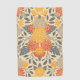 Dieses Handtuch ist mit Blume und Blätter in Gelb-, Orange- und Blautönen auf cremefarbenem Hintergrund gestaltet.