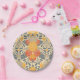 Die Teller sind mit Blume und Blätter in Gelb-, Orange- und Blautönen auf cremefarbenem Hintergrund gestaltet.
