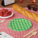 Abstrakte digitale Kunst von grünen und helleren grünen Quadraten in einer karierten Formation.